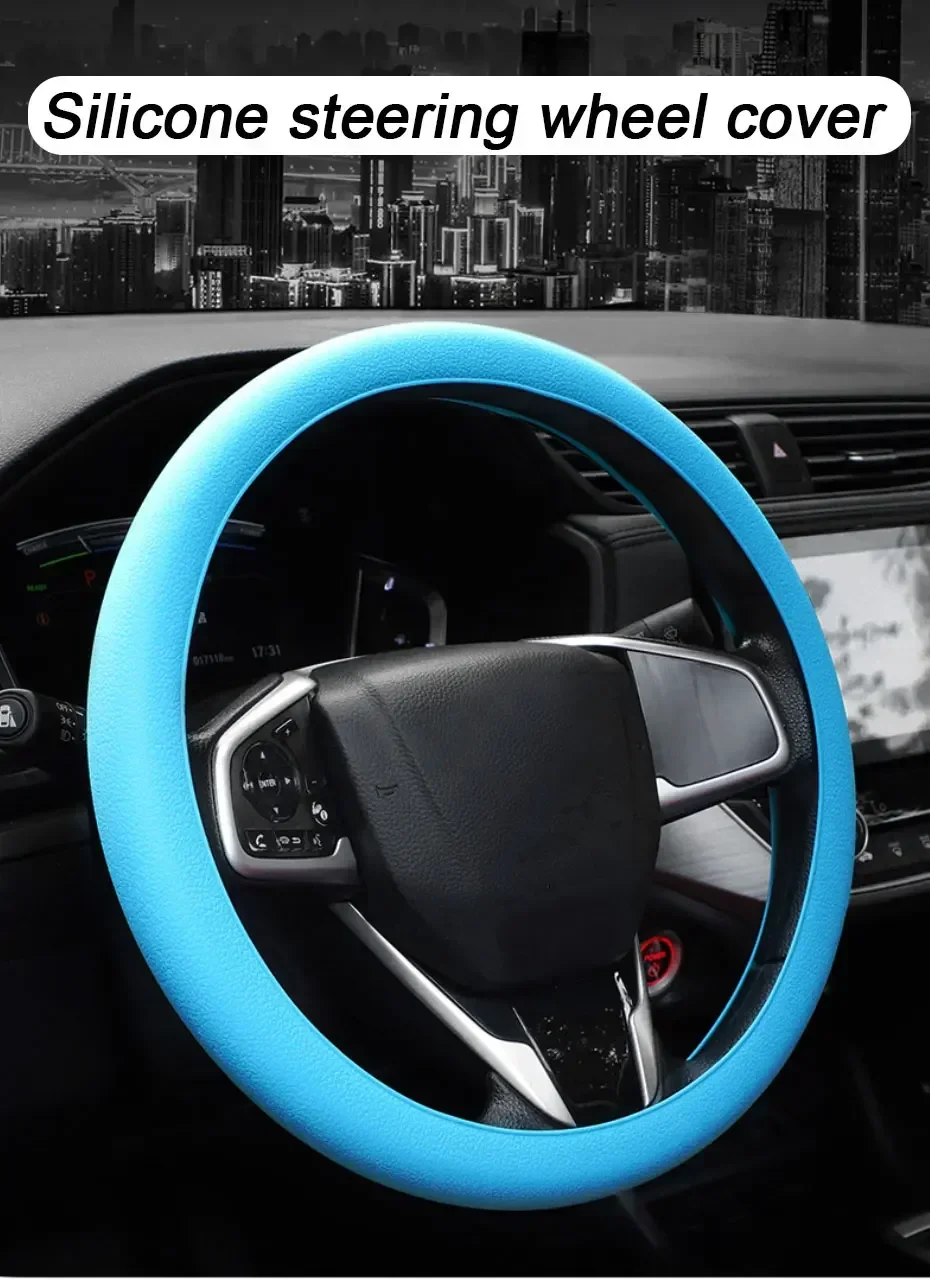 Car Summer Universal Silicone Steering Wheel Cover Elastic Glove Cover Texture Soft Multi Color Auto Decoration DIY Accessories